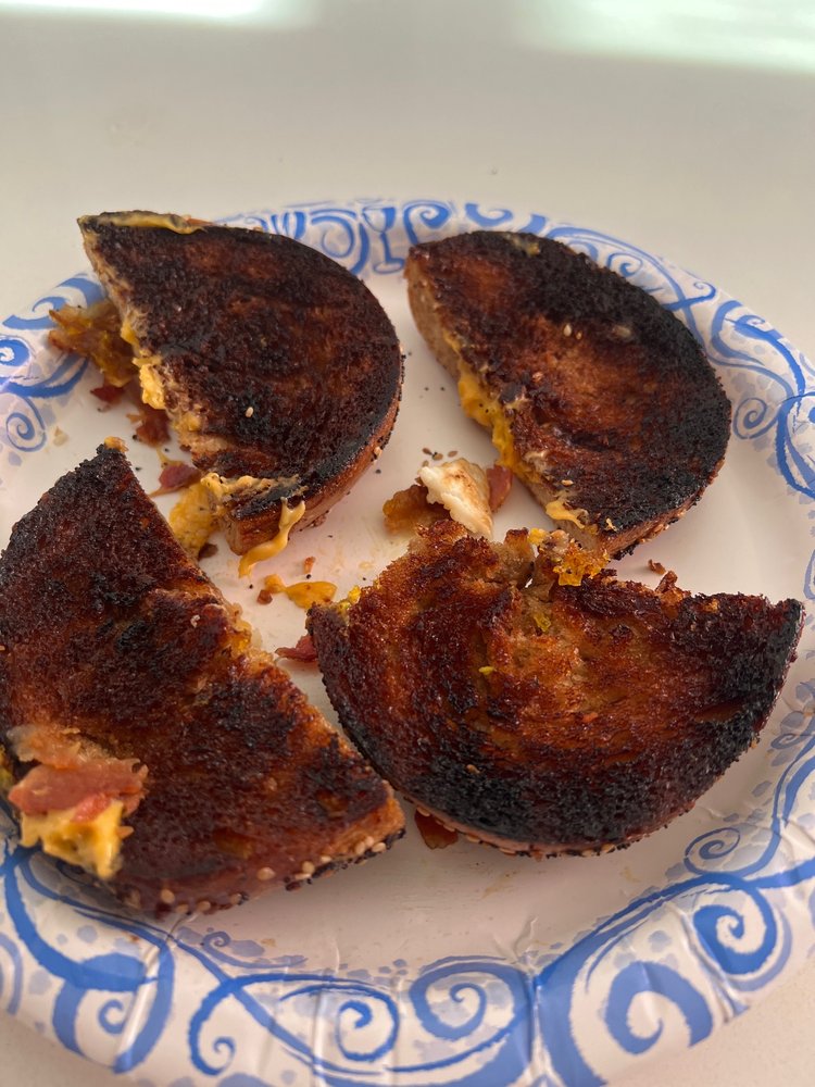 BBQ chicken with Bacon, melted cheddar cheese and grilled onions on a toasted roll